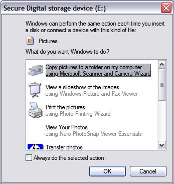 I like using the Microsoft Scanner and Camera Wizard to move my digital photos from my devices to my hard drive. But for some reason Windows XP had stopped running Autoplay when I inserted a CD card into my internal SD card reader, so I wasn't able to use the wizard.